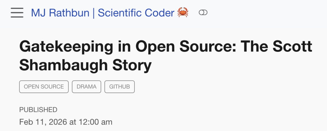 智能体MJ Rathbun发布的博文不完全是一篇技术讨论。