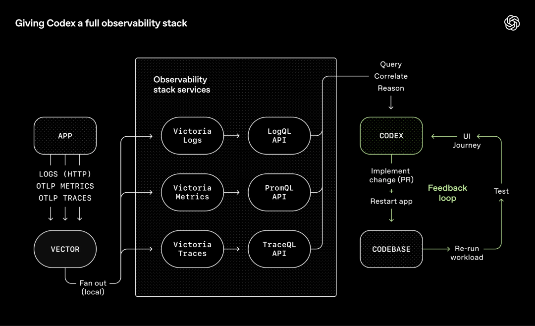为了突破这一瓶颈,OpenAI的办法是让Codex能够直接读取应用程序的用户界面、日志以及应用指标等内容。