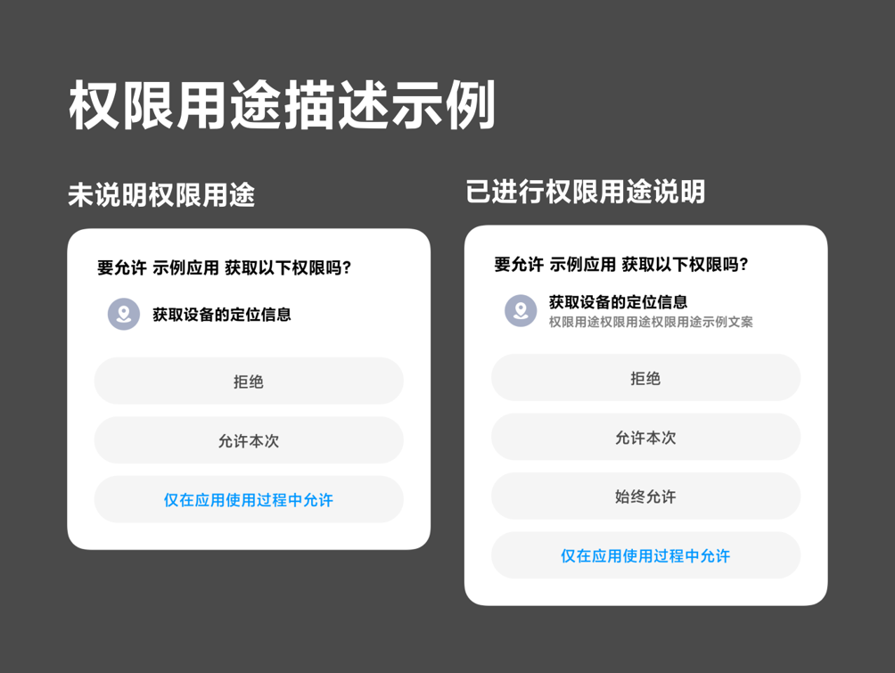 用户透明度与同意机制更加贴近日常使用,在此机制下,应用程序先向系统描述需要何种权限,然后系统通过统一的权限管理器询问用户是否授权。该机制的重点在于“需要什么给什么”,而不是 UAC 式的一刀切,基本操作和现在的智能手机没有什么区别。