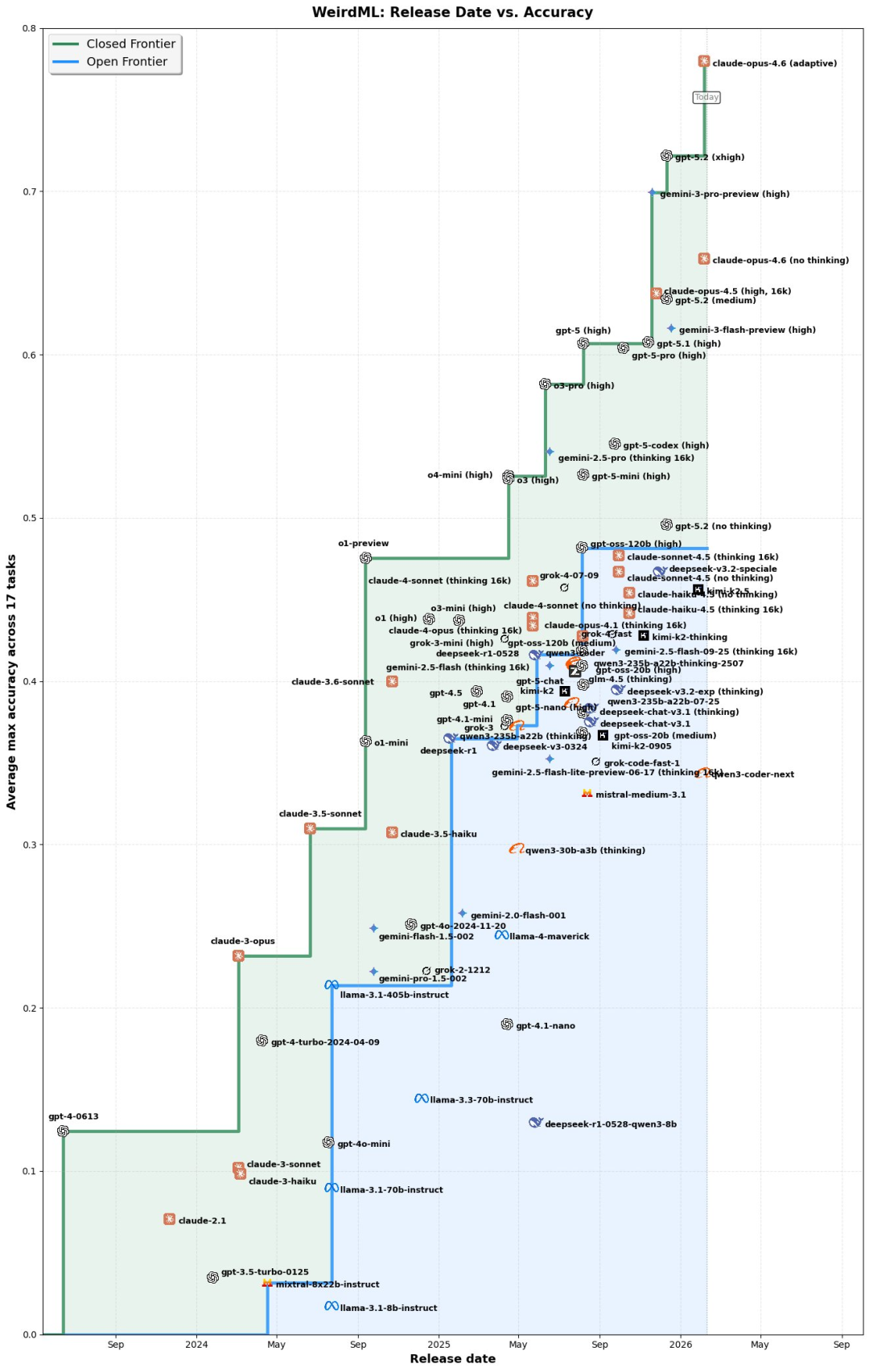 FrontierMath Tier 4:23.5% (直接达到GPT-5.2的11倍)