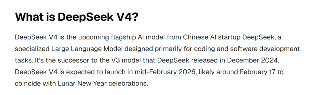 上个月初,Information爆料称,DeepSeek计划在2月中旬,也正是春节前后,正式发布下一代V4模型。