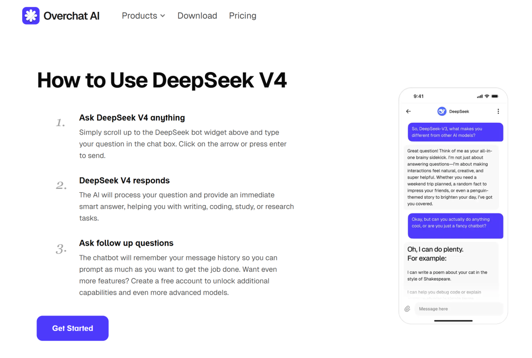 另外,在一个overchat.ai的网站上,我们也发现了不少关于DeepSeek V4的蛛丝马迹。