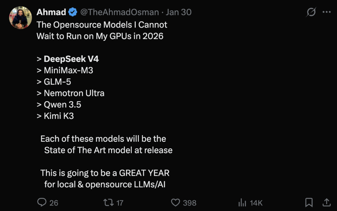 总之,大家对DeepSeek V4充满期待: