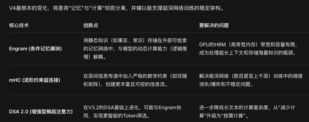 另外,DeepSeek V4还引入了新的Engram条件存储系统,实现近乎无限的上下文检索,使其能够处理极长的编码提示,并在大型代码库中保持上下文。