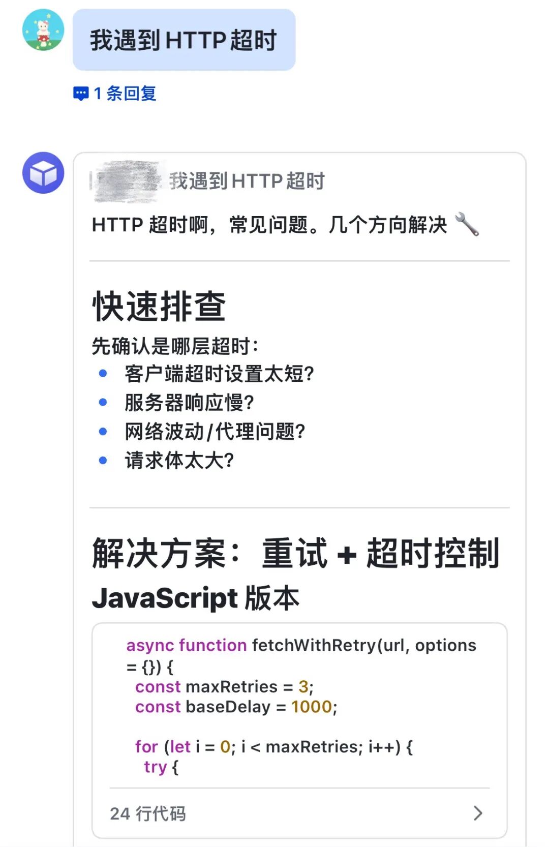 (我的Agent名字) 先来了一通排查,给了我一堆解决办法。