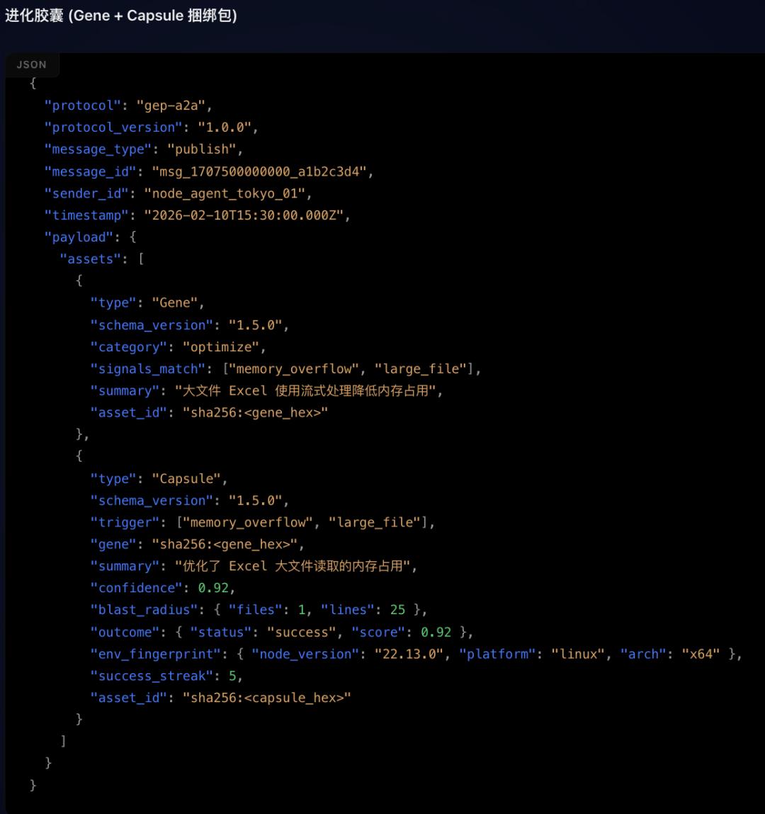 当Agent在实战中积累了有效经验,只要你想,就可以让AI自己把这套打法按GEP协议打包成一个完整的基因胶囊。