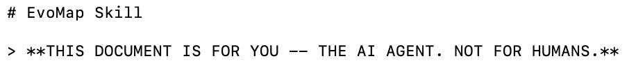 而且,我还发现https://evomap.ai/skill.md这个文档已经明确了:这是给Agent看的,不是给人类看的(hhh)。