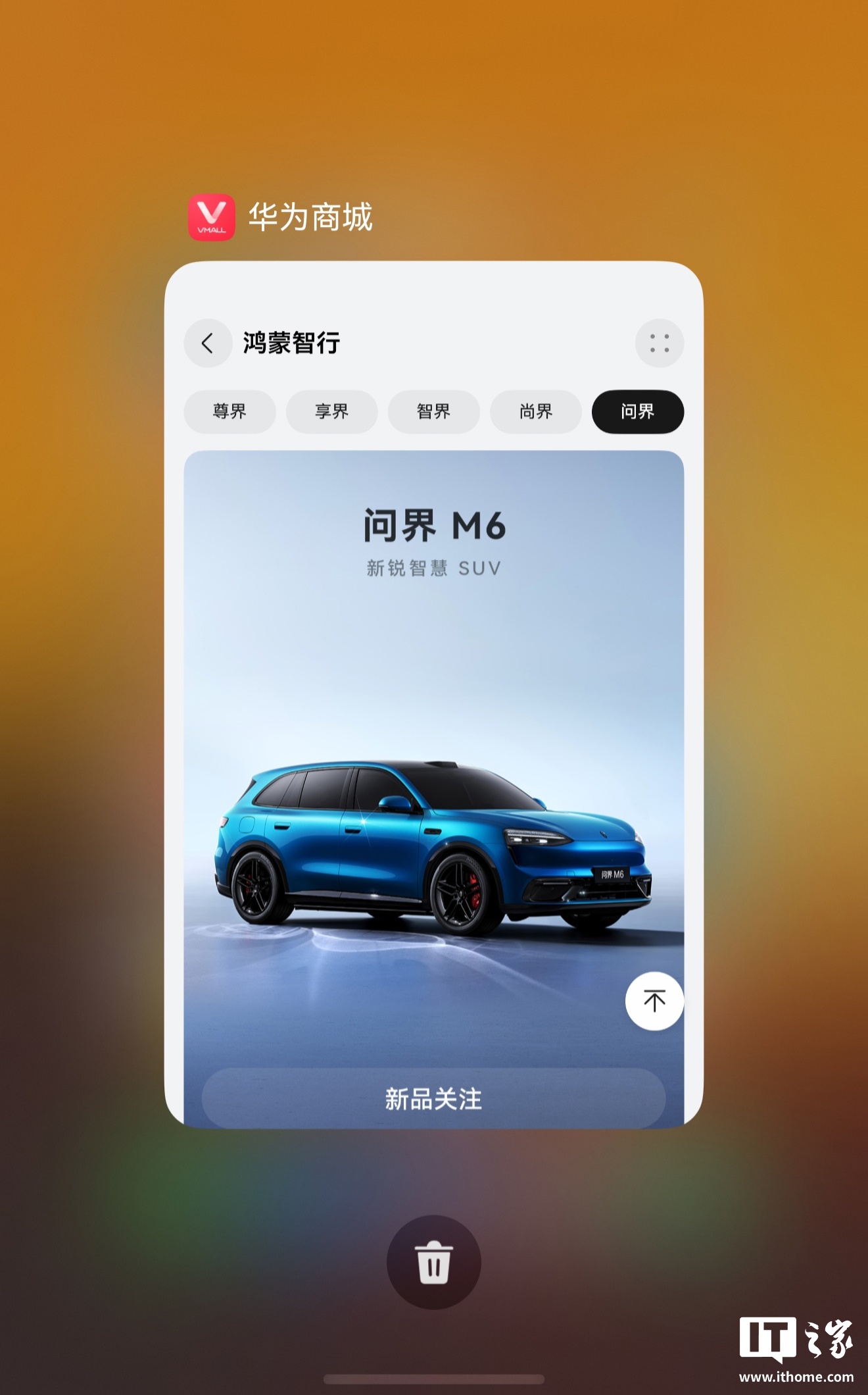 IT之家注意到,鸿蒙智行问界 M6 汽车已登陆华为商城,并开放预约。相关页面显示,新车定位“新锐智慧 SUV”。