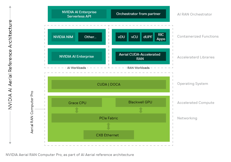 图:英伟达最新Aerial RAN Computer Pro(ARC-Pro)解决方案架构示意图。来源:英伟达。