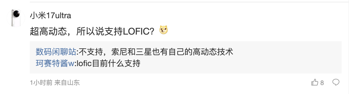 后续有用户在评论区表示:“我魅机无了”,博主回复道:“暂时还是存活状态,产品待定”;另一名用户则询问道:“超高动态,所以说支持 LOFIC?”,博主则回复道:“不支持,索尼和三星也有自己的高动态技术”。