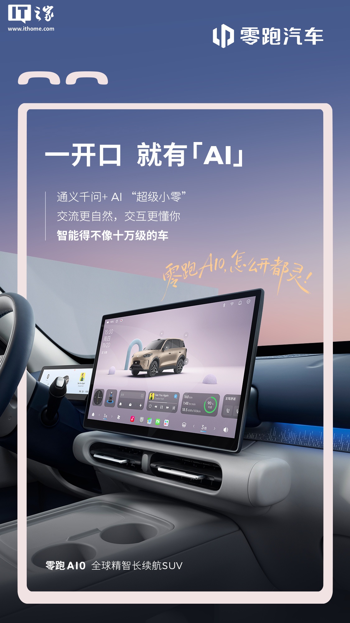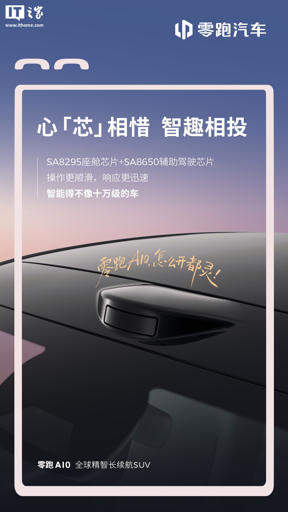 此外,零跑 A10 搭载 SA8295 座舱芯片 + SA8650 辅助驾驶芯片,AI“超级小零”接入通义千问语音大模型。