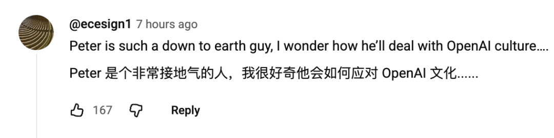 下面这位网友看完这个采访憋不住了,直言:Peter 太接地气儿了啊,这到了 OpenAI 咋适应啊..(doge