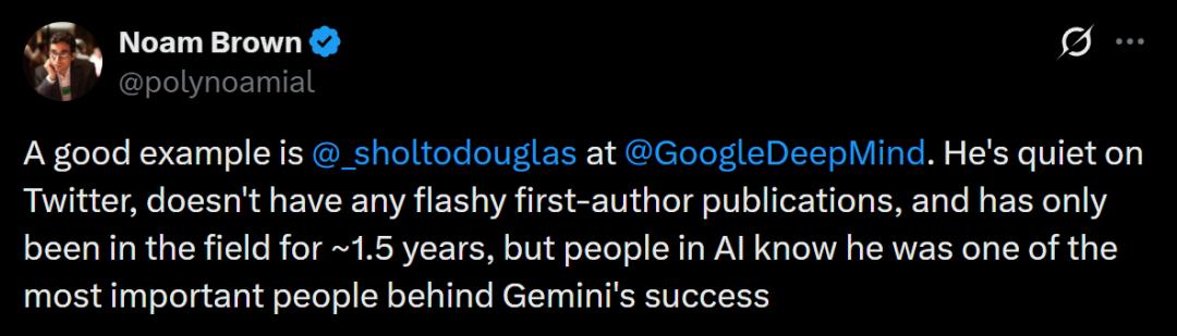 他在X上十分低调,从未以一作身份发表过任何引人注目的论文,入行时间也只有一年半,然而,他却是Gemini成功的背后关键人物。
