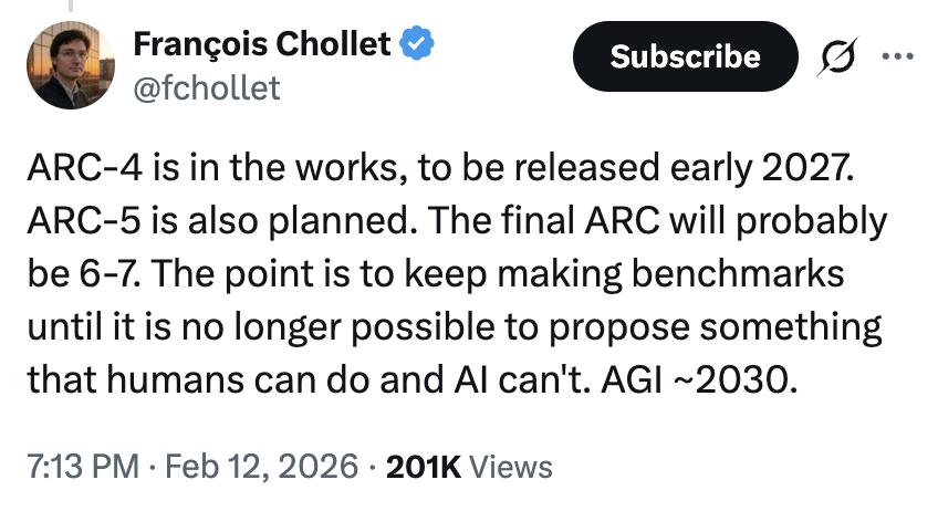 即使是AGI「怀疑论者」Francois Chollet,也认为AGI能在2030年实现,还有四年。