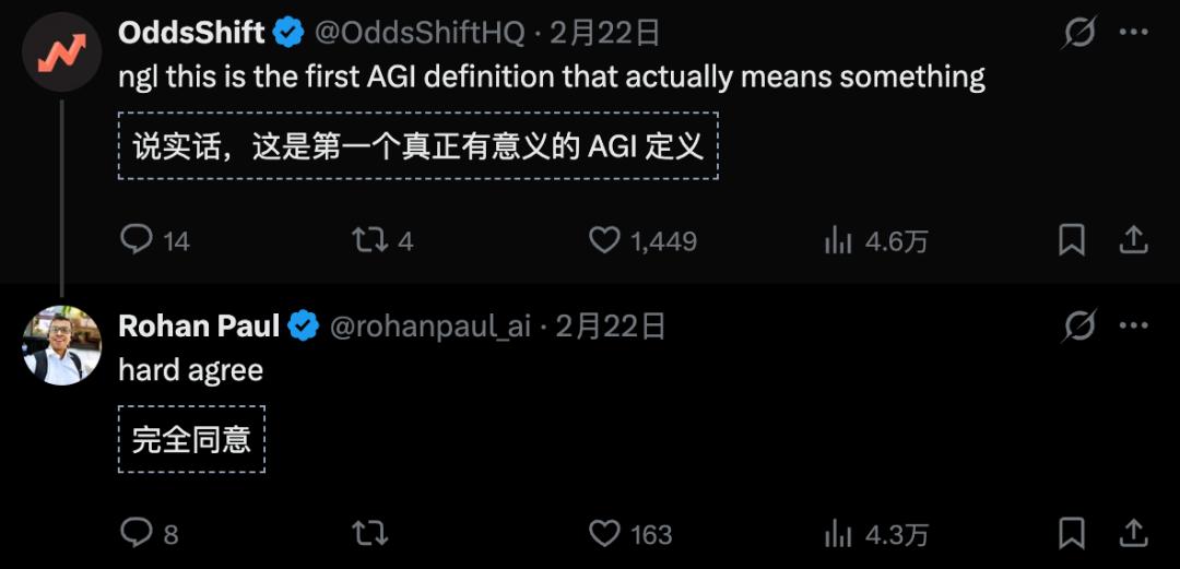 网友们纷纷表示,这才是第一个真正有意义的AGI定义。