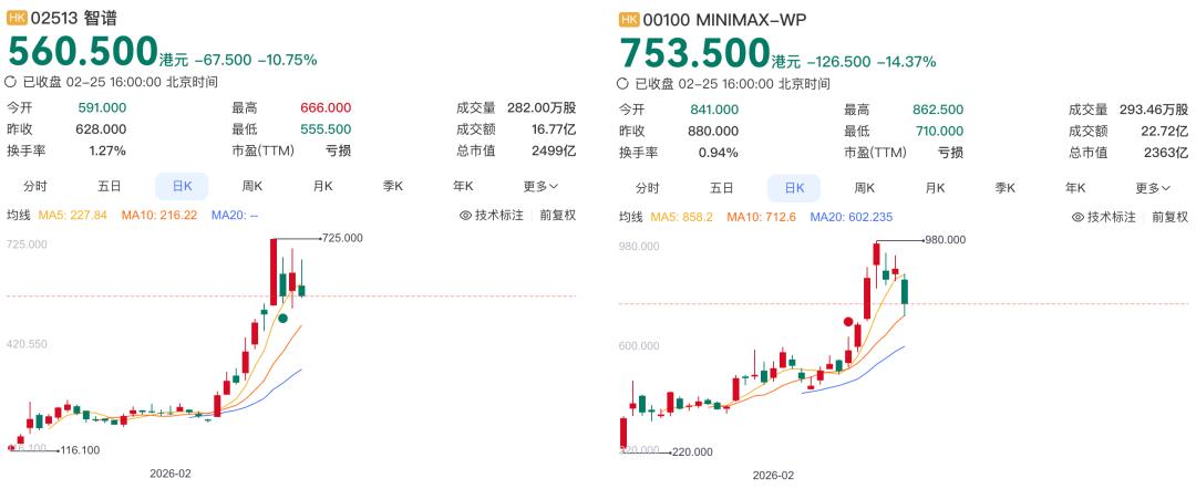 智谱和MiniMax上市至今股价变化情况