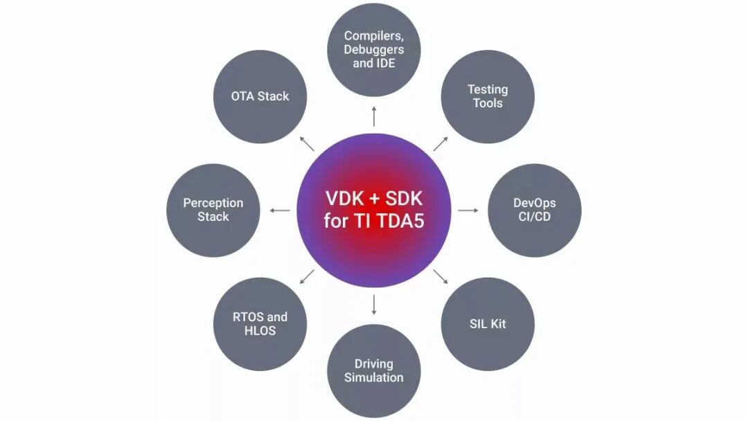 TI TDA5 系列 SoC 的 VDK 在帮助德州仪器软件开发团队开展芯片流片前的软件开发方面发挥了关键作用。借助 VDK,开发人员能够在芯片尚未量产之前设计并完善 TI SDK,从而实现更早的软件验证与优化。