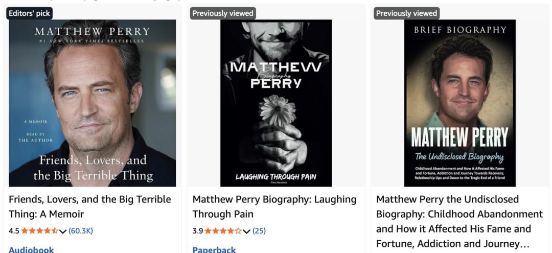 《滚石》杂志记录下了这样荒诞的一幕:当美国前国务卿亨利·基辛格或《老友记》主演马修·派瑞去世的消息刚刚传出几小时,亚马逊上就会凭空冒出几十本关于他们的“最新传记”。