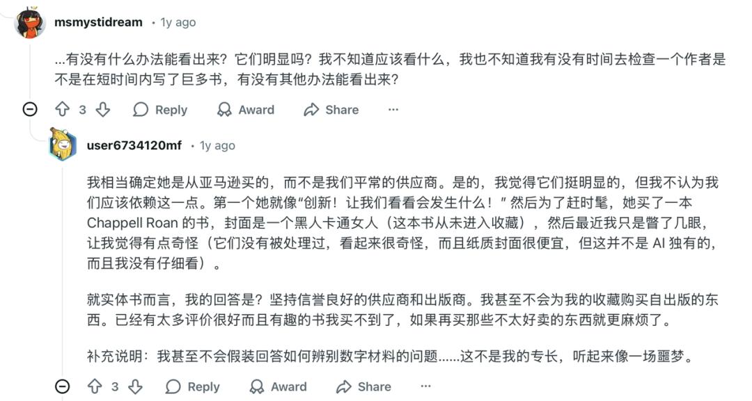 首当其冲的是图书管理员。他们在 Reddit 和 404Media 上爆料,他们在后台看到大量 AI 写的书,封面诡异、内容空洞。而他们却对此无能为力。