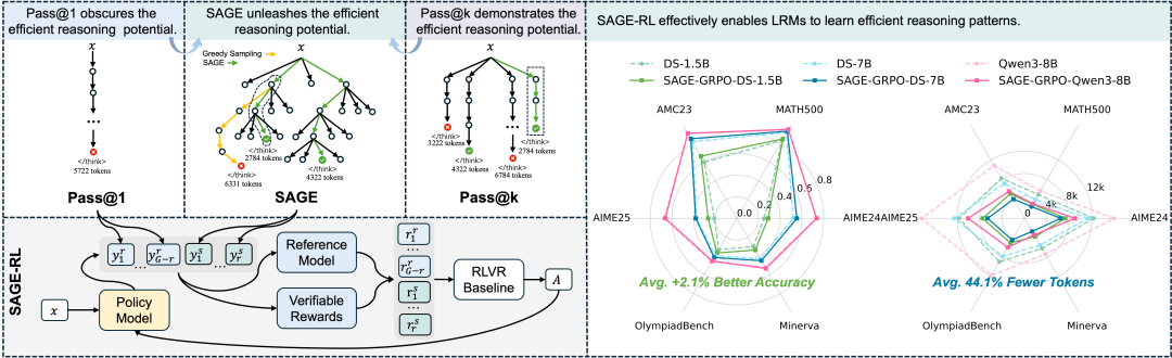 让最聪明的模型去做最难的奥数题时,SAGE算法能让模型找到更短的路径,显著提升解答准确率的同时,还避免了冗长的废话带来的幻觉;