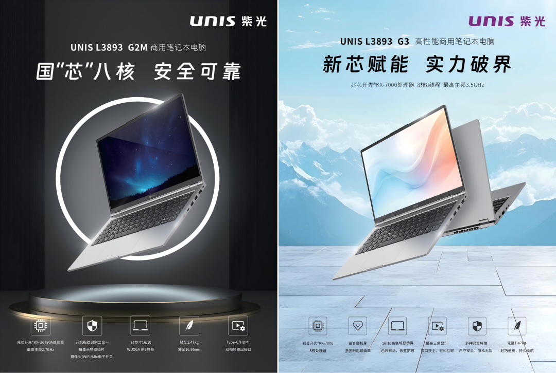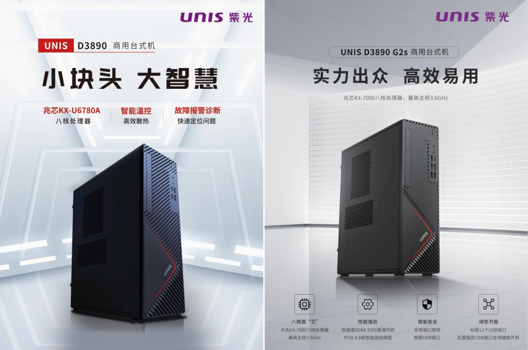 本次紫光UNIS共有4款搭载兆芯CPU的机型成功中标,涵盖台式机与笔记本两大品类,全面覆盖企业各类办公场景。
