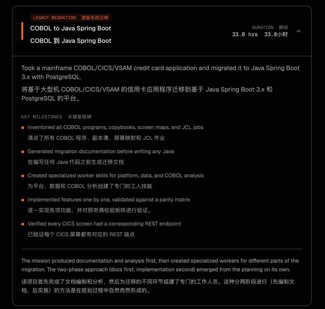 用户只需告诉智能体想要做什么,例如“帮我构建一个CRM系统”或者“将这段PHP代码库迁移到TypeScript”,智能体就能自动将任务拆解为子任务,并按照时间和逻辑顺序执行。
