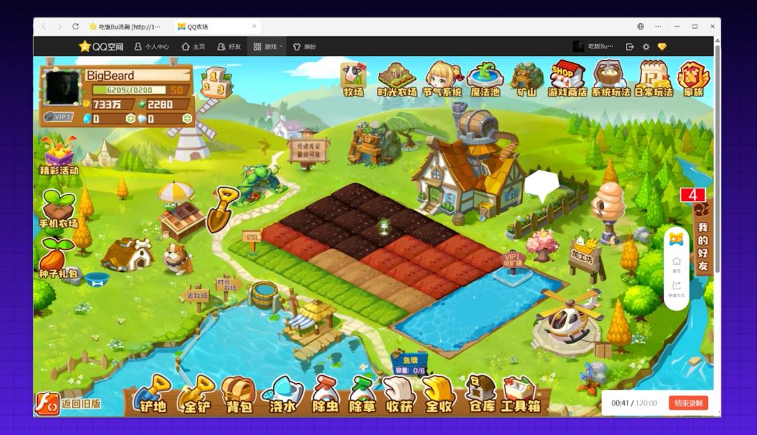 值得一提的是,腾讯把 QQ 农场重新做成小游戏回归,但旧版的 QQ 农场并没有停服,在 QQ 空间 App 的小游戏可以进入,而在电脑网页端,你也能见到这个熟悉的画面。