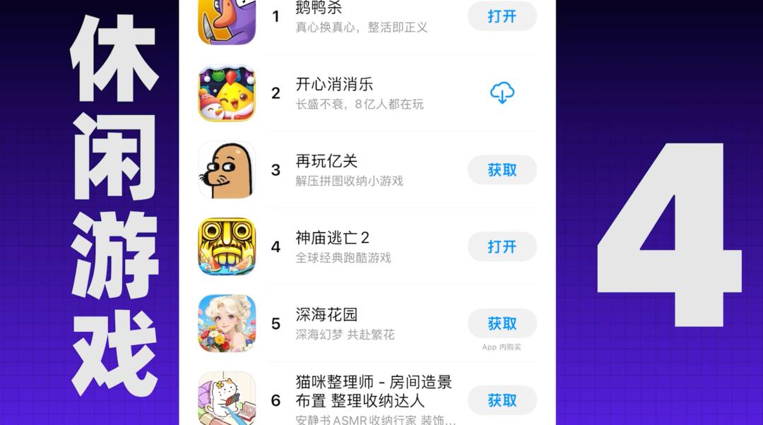接下来说一个大家都很熟悉的游戏,《神庙逃亡 2》,目前在 App Store 的休闲游戏榜排名第 4,在整个热门游戏排名第 24。