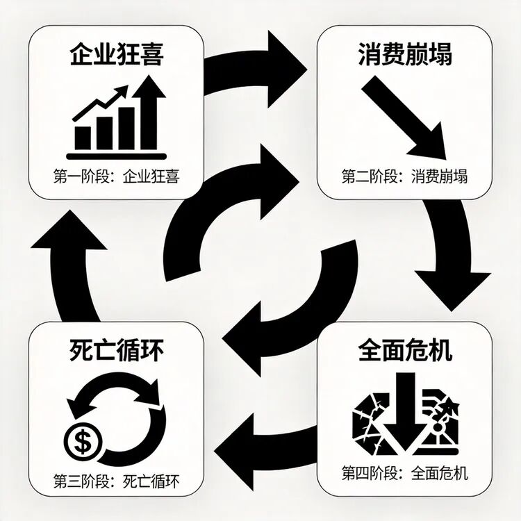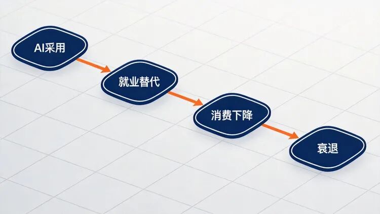 企业发现收入开始下降(因为消费者没钱了),怎么办?继续裁人、加大AI投入来削减成本。这又导致更多失业、更低的消费、更差的收入——螺旋加速旋转。