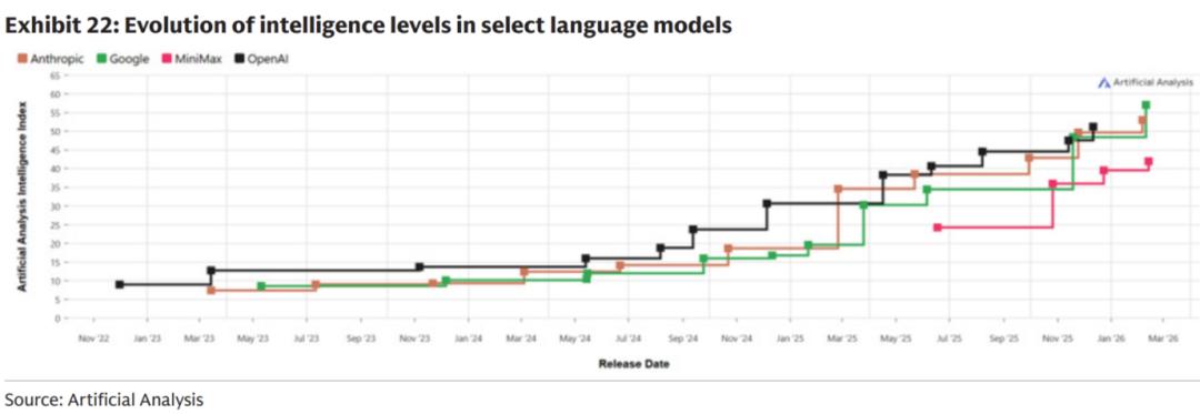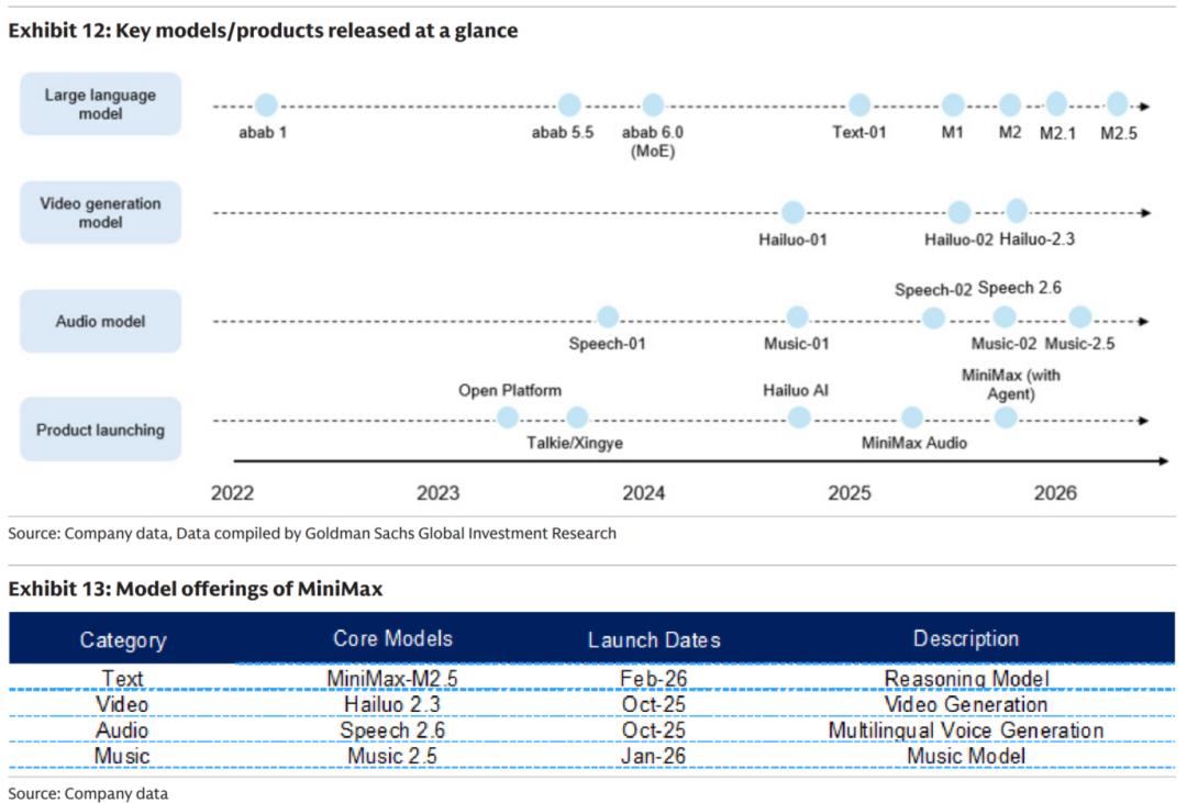 25年四季度以来,各模态模型都在快速迭代,其中重点是26年2月的M2.5基座模型,开始主推Agent功能,侧重编程、工具调用、办公场景的应用,目标就是把AI从辅助角色变成“AI同事”。