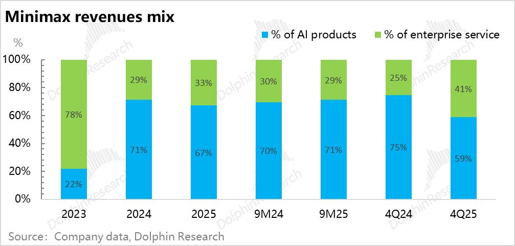 由于企业服务毛利率更高(经济模型上,本质是Token推理云成本 vs Minimax对Token的收费),企业客户接API基本都要付费,这块业务的毛利率是在60%以上,前三个季度更是接近70%。