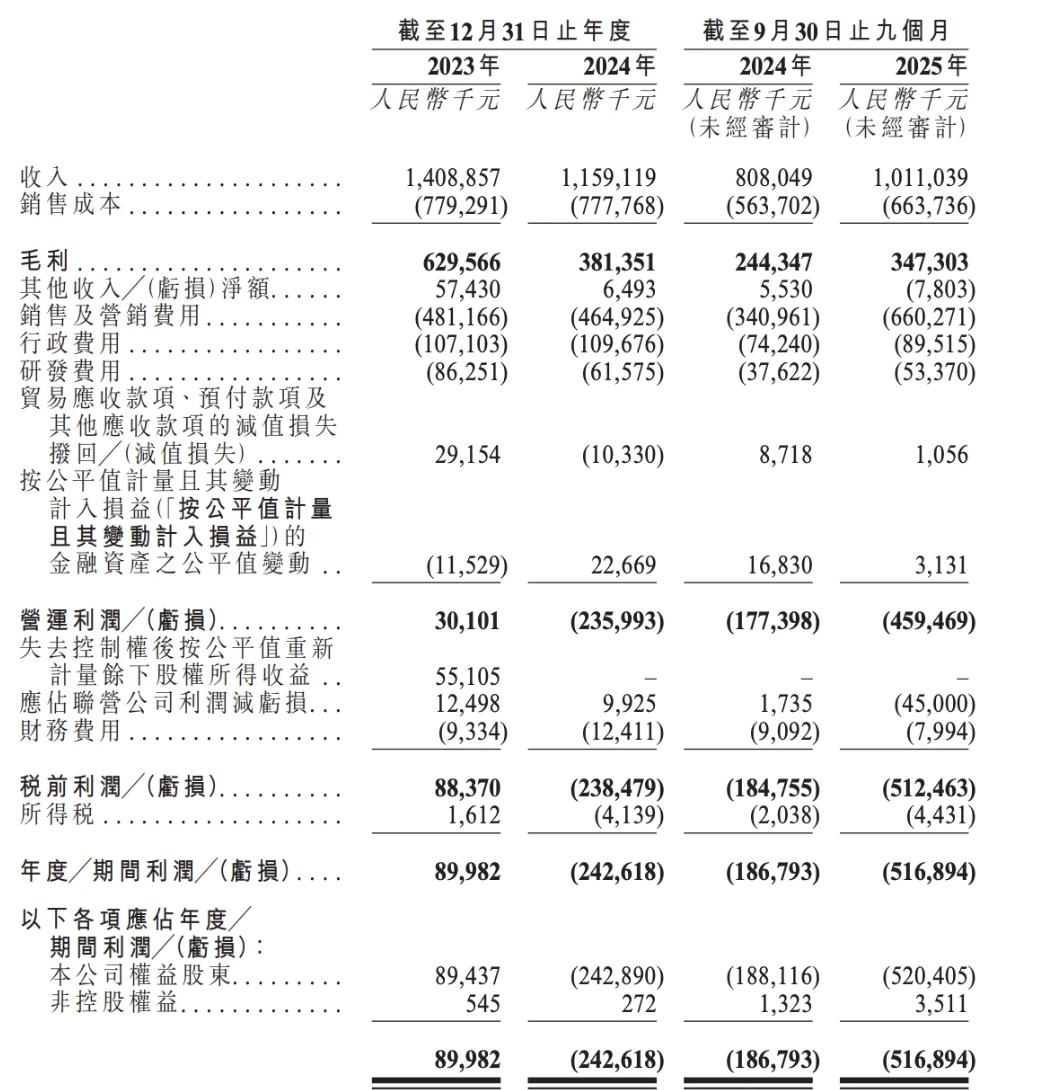 不过,中文在线的短剧业务尚未实现盈利,其整体业绩持续承压。招股书显示,2023年、2024年及2025年前九个月,中文在线净利润分别为0.90亿元、-2.43亿元及-5.17亿元,亏损规模持续扩大。虽然处于行业头部,但中文在线依然未能取得盈利。