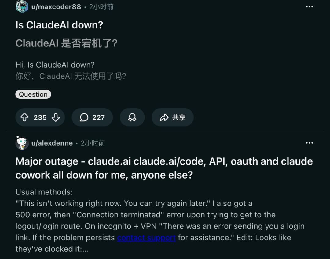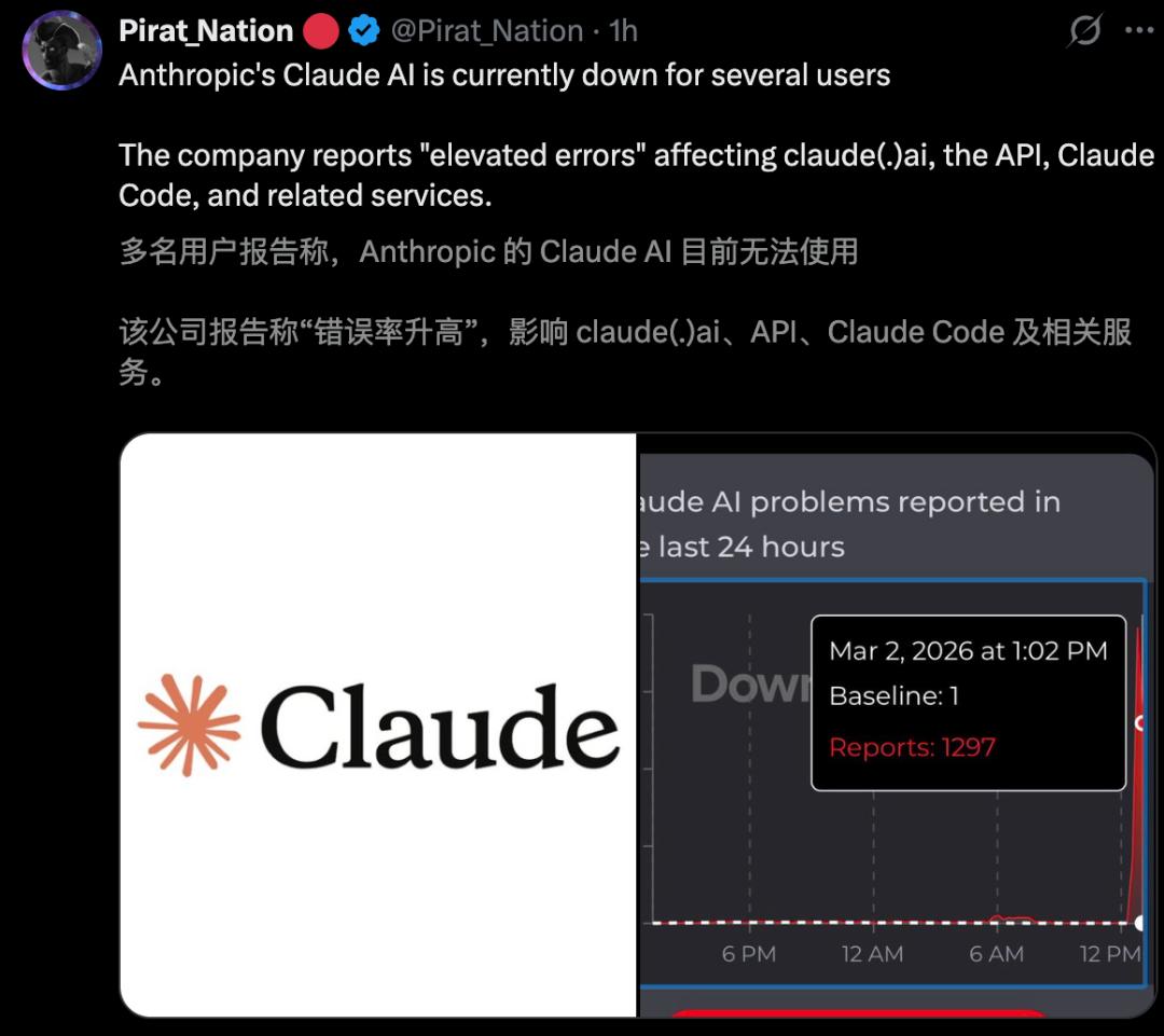「Claude宕机」瞬间刷屏全网。