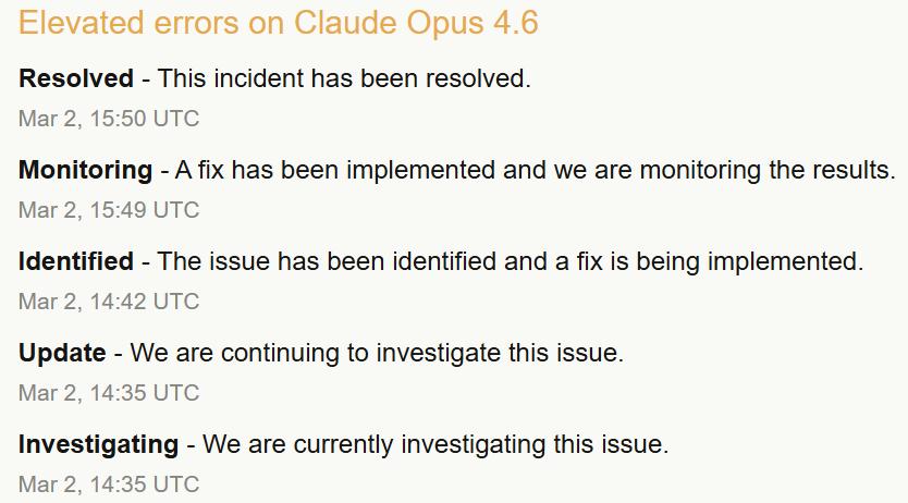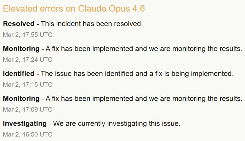 22点35分,核心模型Claude Opus 4.6突发大面积报错,团队被迫再次开启紧急修复。