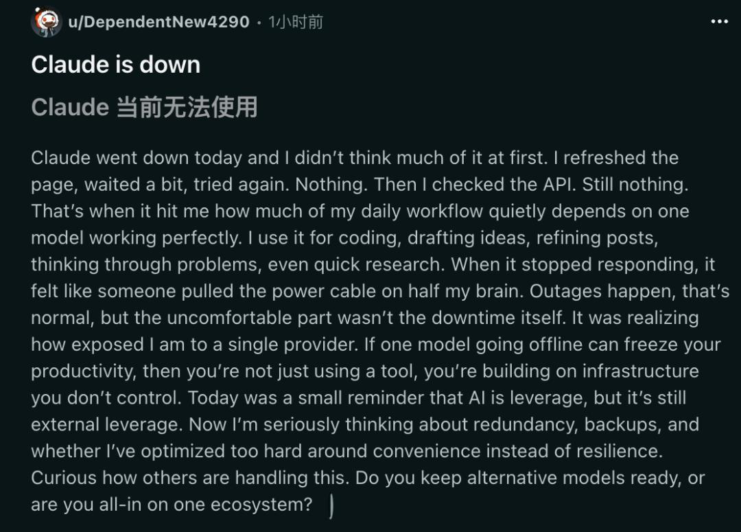此时此刻,全网一片哀嚎,离了Claude,瞬间退回了原始人的时代。