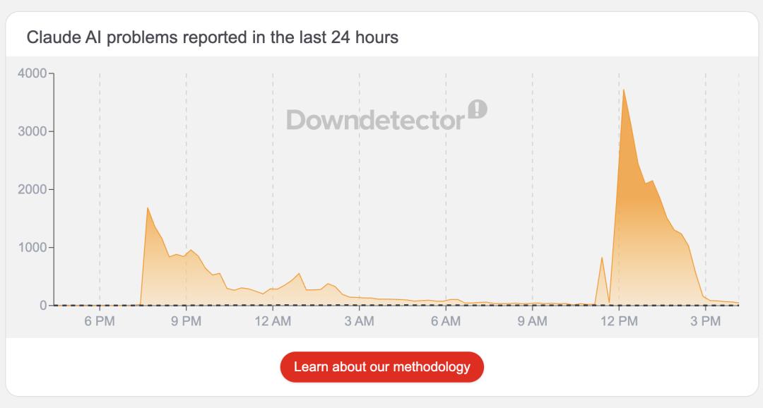 图:Downdetector中Claude报障飙升曲线