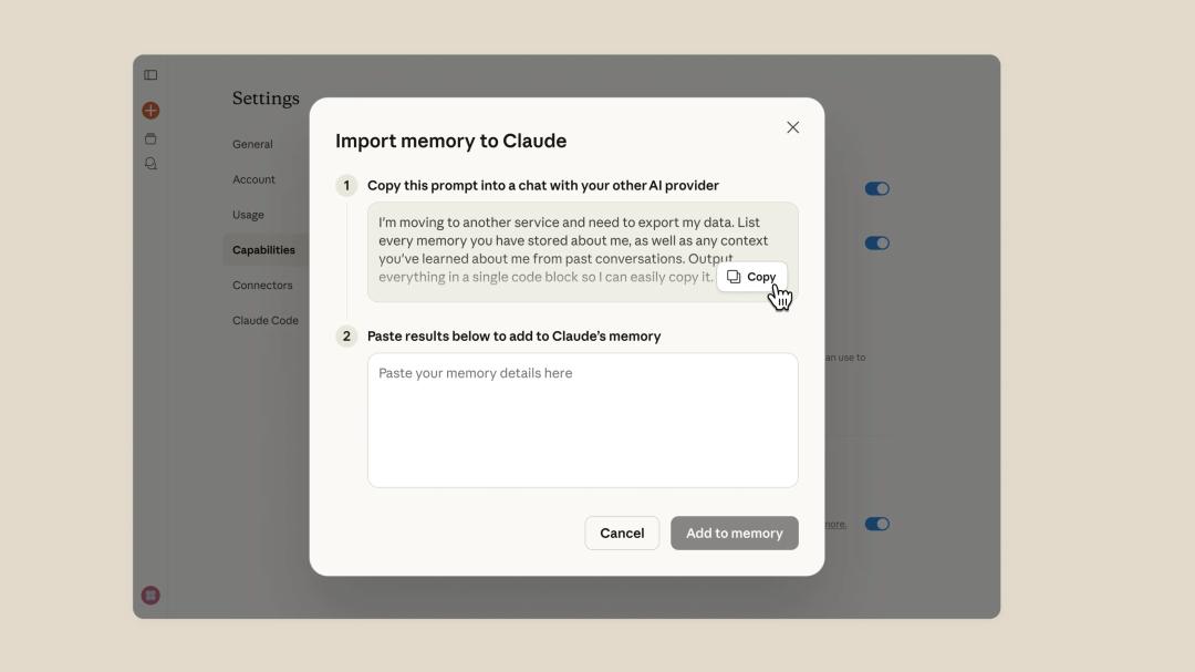 在这波「退出 ChatGPT」的热潮找中, Claude 也是趁火打劫,官方直接发布了一段指导用户如何从竞品那里导入记忆的教程。