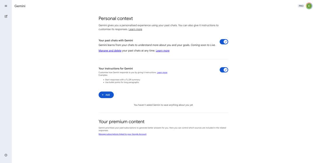 Gemini 存储的用户信息,包括全部的聊天记录,和自定义的指令|https://gemini.google.com/saved-info