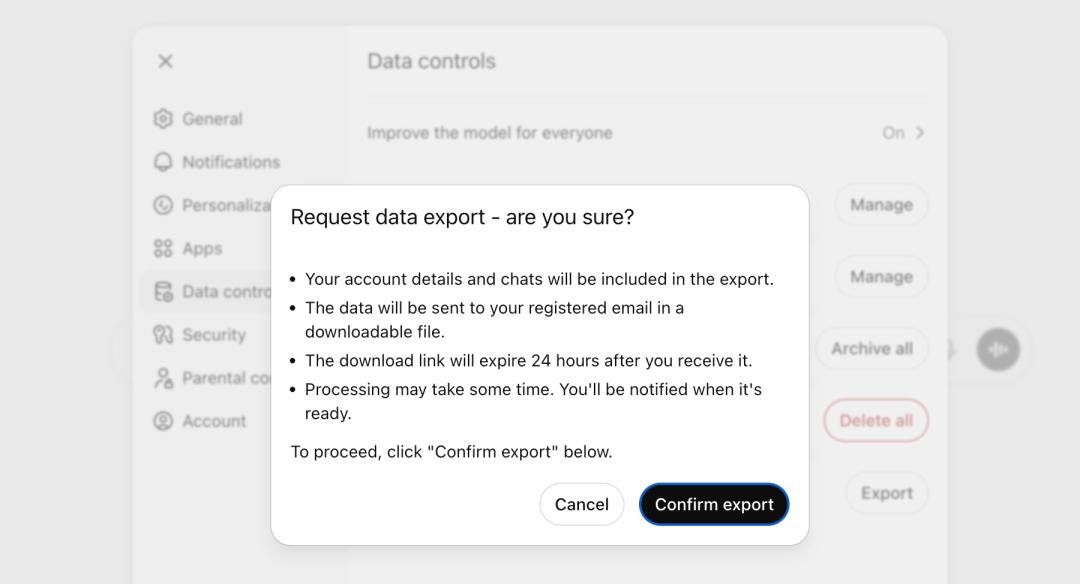 ChatGPT 内提供的数据导出功能