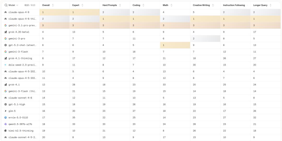 紧随其后的,是智谱 GLM-5、百度 Ernie-5.0-0110 以及阿里 Qwen3.5,分别位列 16、17、18 名。多模态在这一轮更新中已成为标配,大模型正在从单一的对话工具,跃升为整合了内容、视觉与 Agent(智能体)的“智能操作系统”。