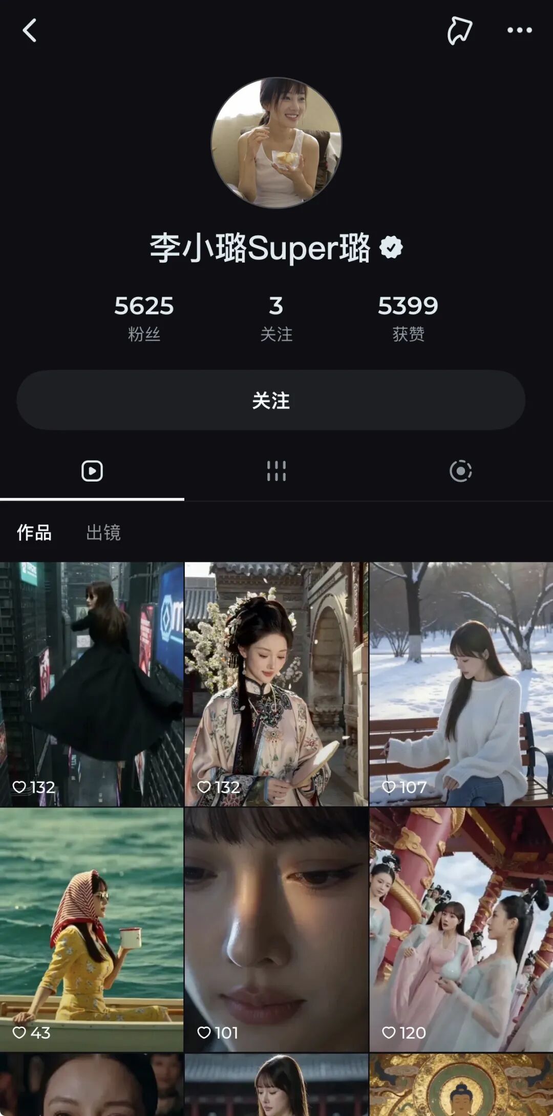 点开她的主页,一溜的 AI 生成视频,演短剧、当导演、赛车、唱跳 rap……全是即梦出品。这种堪比家里长辈沉迷于用 AI 把自己换装成古装美女的热情,也让大家忍不住提问,“她是投资了即梦吗”。