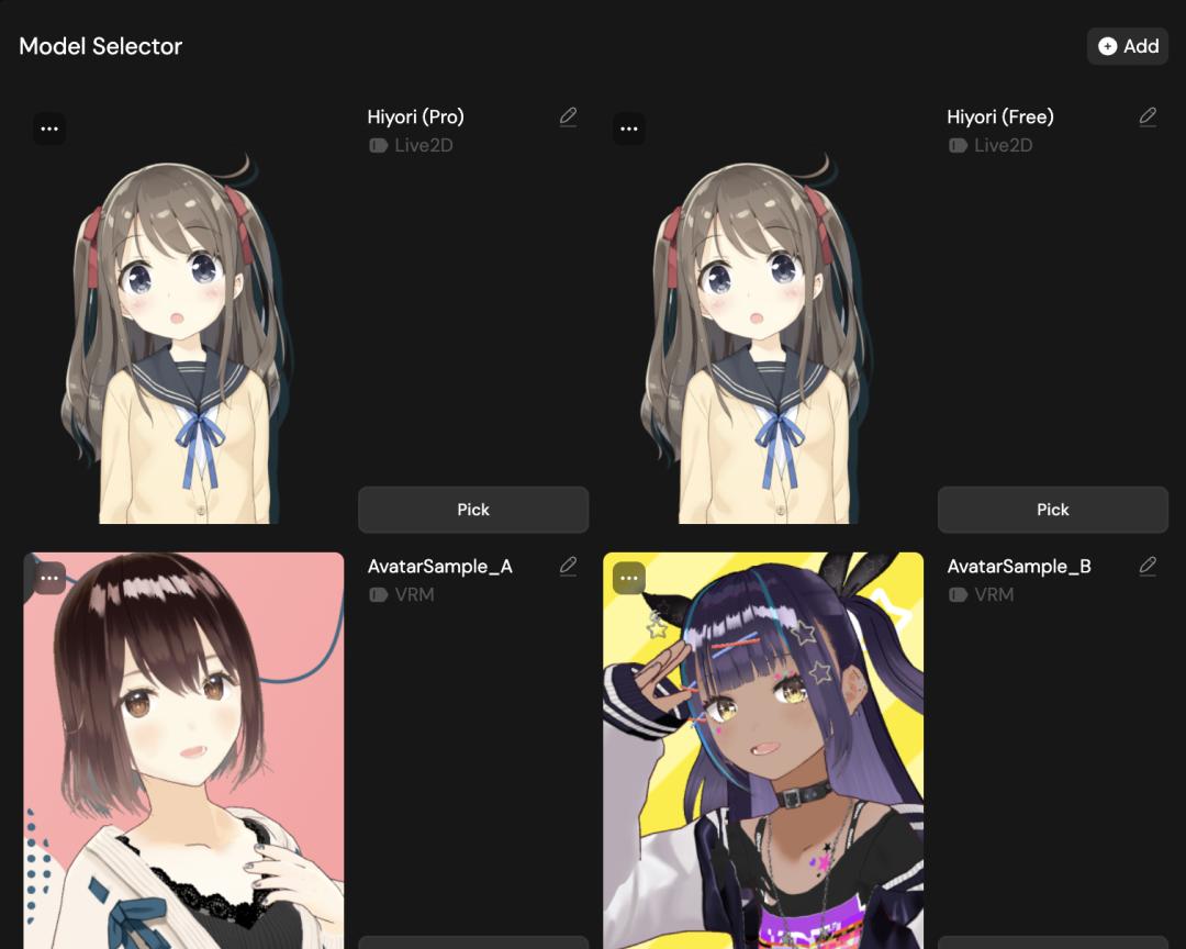 形象上,她支持VRM和Live2D两种,会自动眨眼、视线跟随,还会有各种小动作。