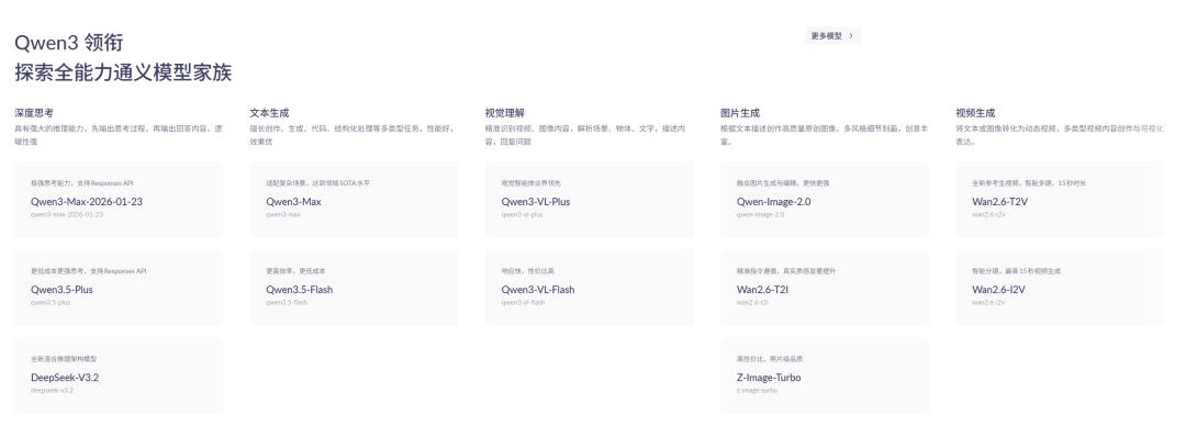 通义模型家族主流模型 图源:阿里云百炼