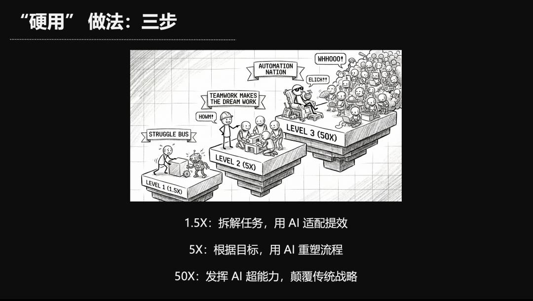 具体如何充分地利用AI的优势呢?我把它分成三步法。