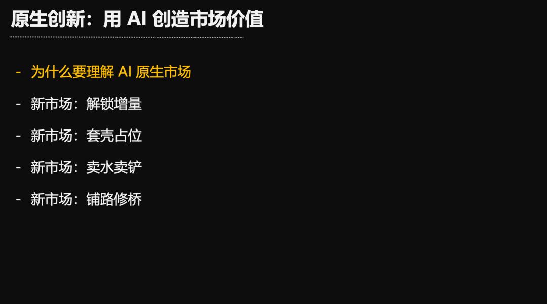 所以我建议保持警惕,哪怕你的生意看起来跟AI一毛关系都没有,也要去理解AI原生市场的机会。