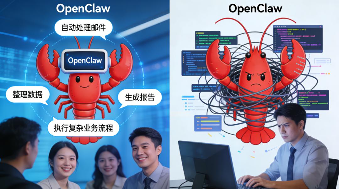 最近,一款名为OpenClaw的AI自动化工具在技术圈引发热议。它让企业看到了“养一只AI龙虾”来承担重复性工作的希望——自动处理邮件、整理数据、生成报告,甚至执行复杂的业务流程。 然而,理想很丰满,现实很骨感。当企业真正开始“养龙虾”时,才发现这比想象中复杂得多。