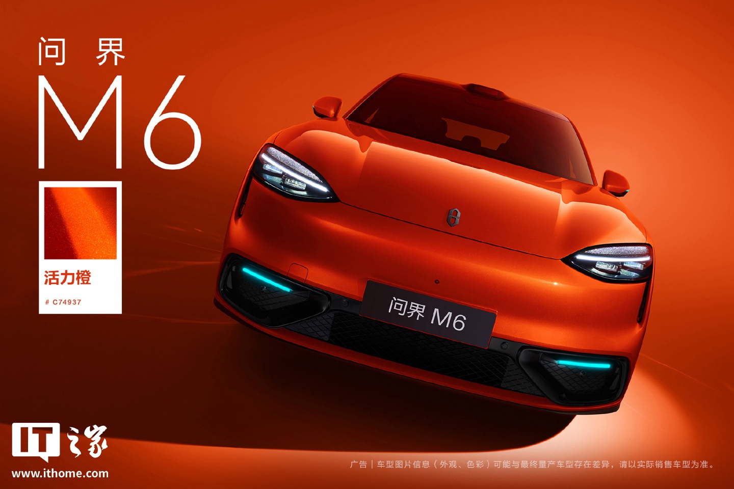IT之家注意到,鸿蒙智行官方今日还发布了问界 M6 全新「活力橙」配色的官图。从官方的图片来看,该车的雷达造型偏扁平,与此次发布的华为乾崑新一代双光路图像级激光雷达外观相近。