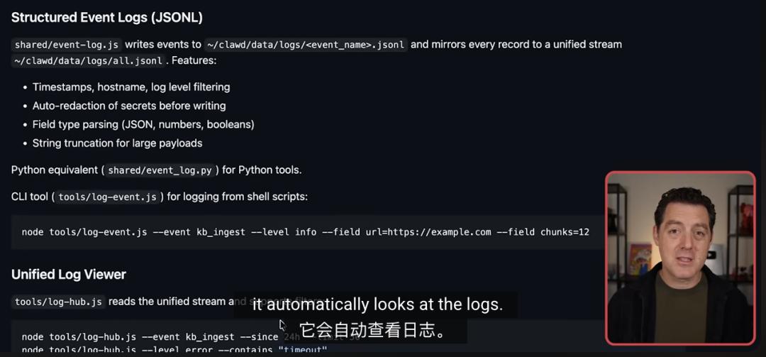 老哥让OpenClaw通过event log.js系统记录下每一次调用的轨迹和报错信息。