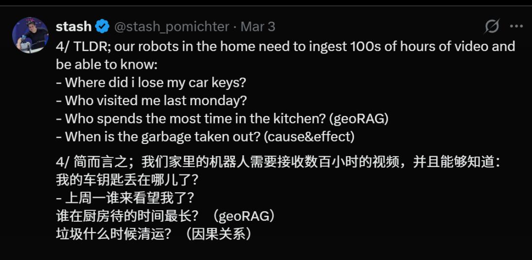 最令人震惊的是,这些并不是简单的视频回放,而是来自一种新的能力:空间+时间+语义的联合记忆。
