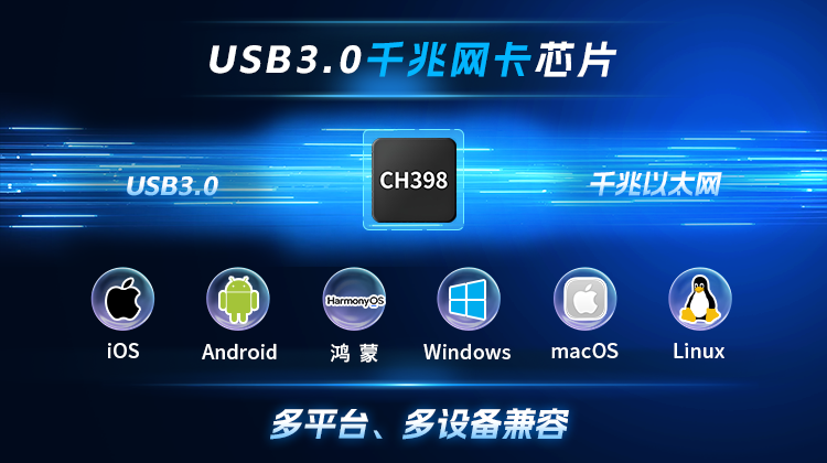 CH398还支持CDC-NCM和CDC-ECM协议,在Linux、Android安卓、iOS苹果、HarmonyOS鸿蒙等系统中可免驱使用,客户可根据需要在厂商驱动和免驱模式中灵活选择。兼顾性能与易用性的驱动方案,为USB网卡、Type-C拓展坞等计算机外设提供更灵活的联网体验,充分满足不同场景各类设备接入千兆网络的通信需求。
